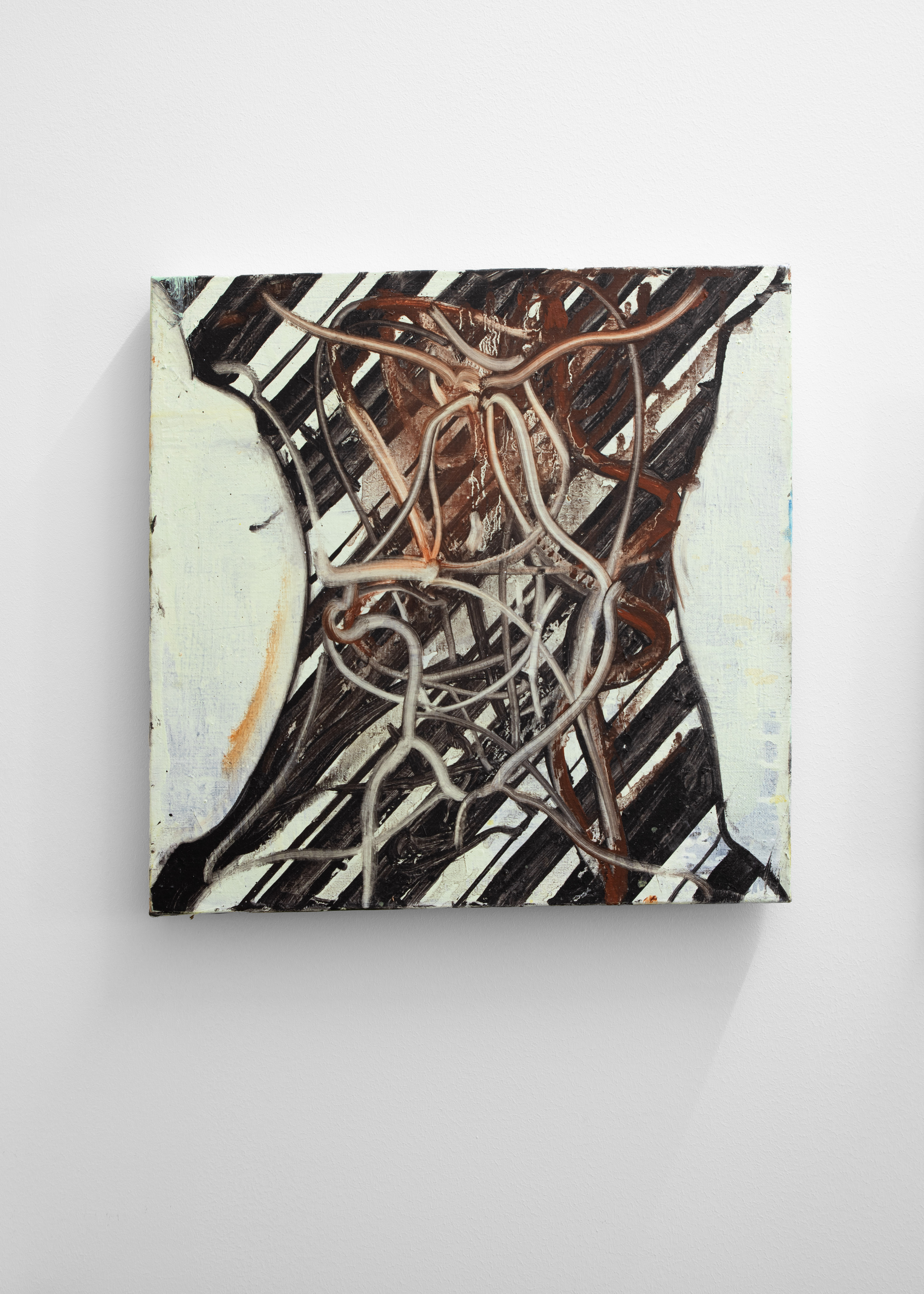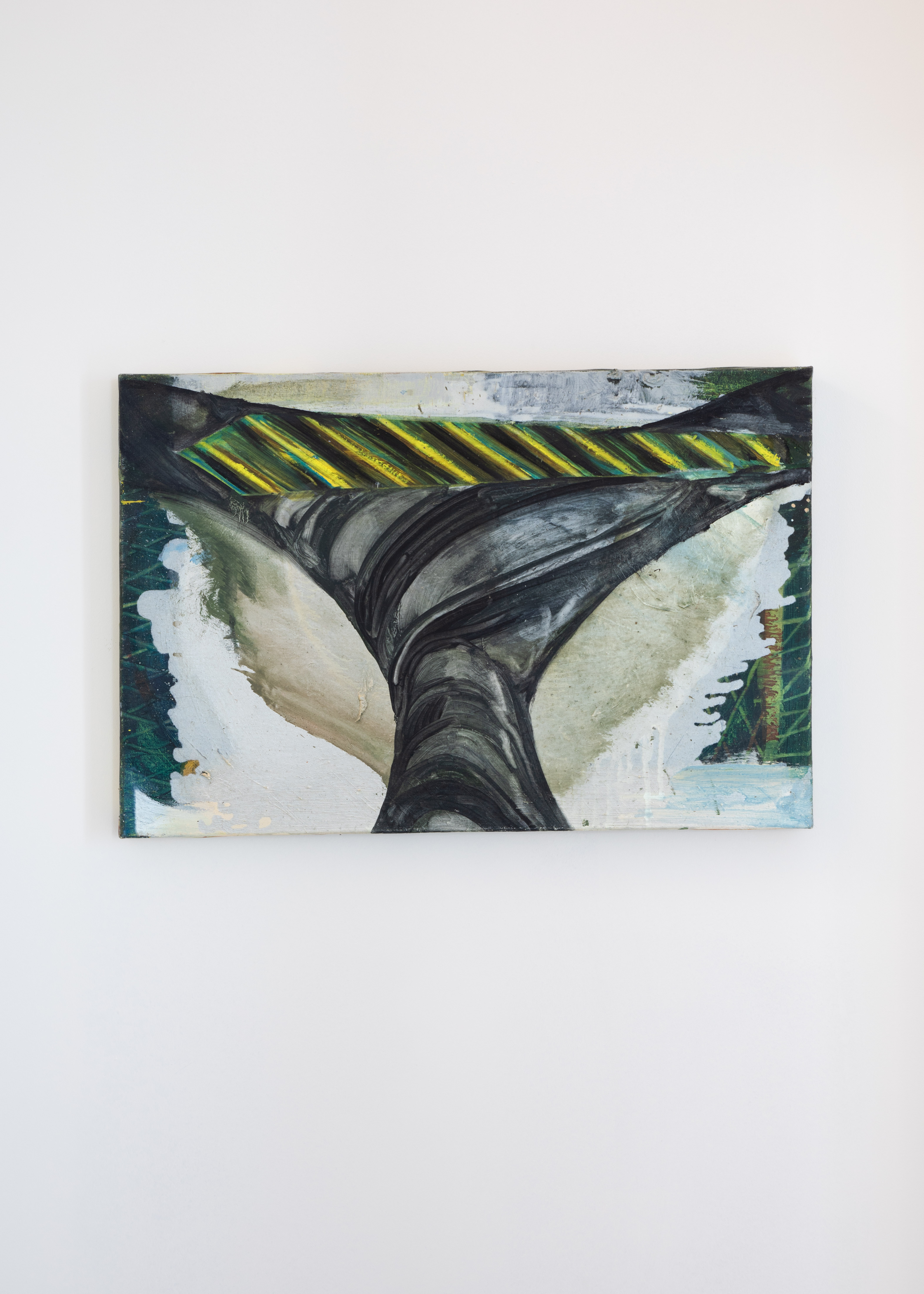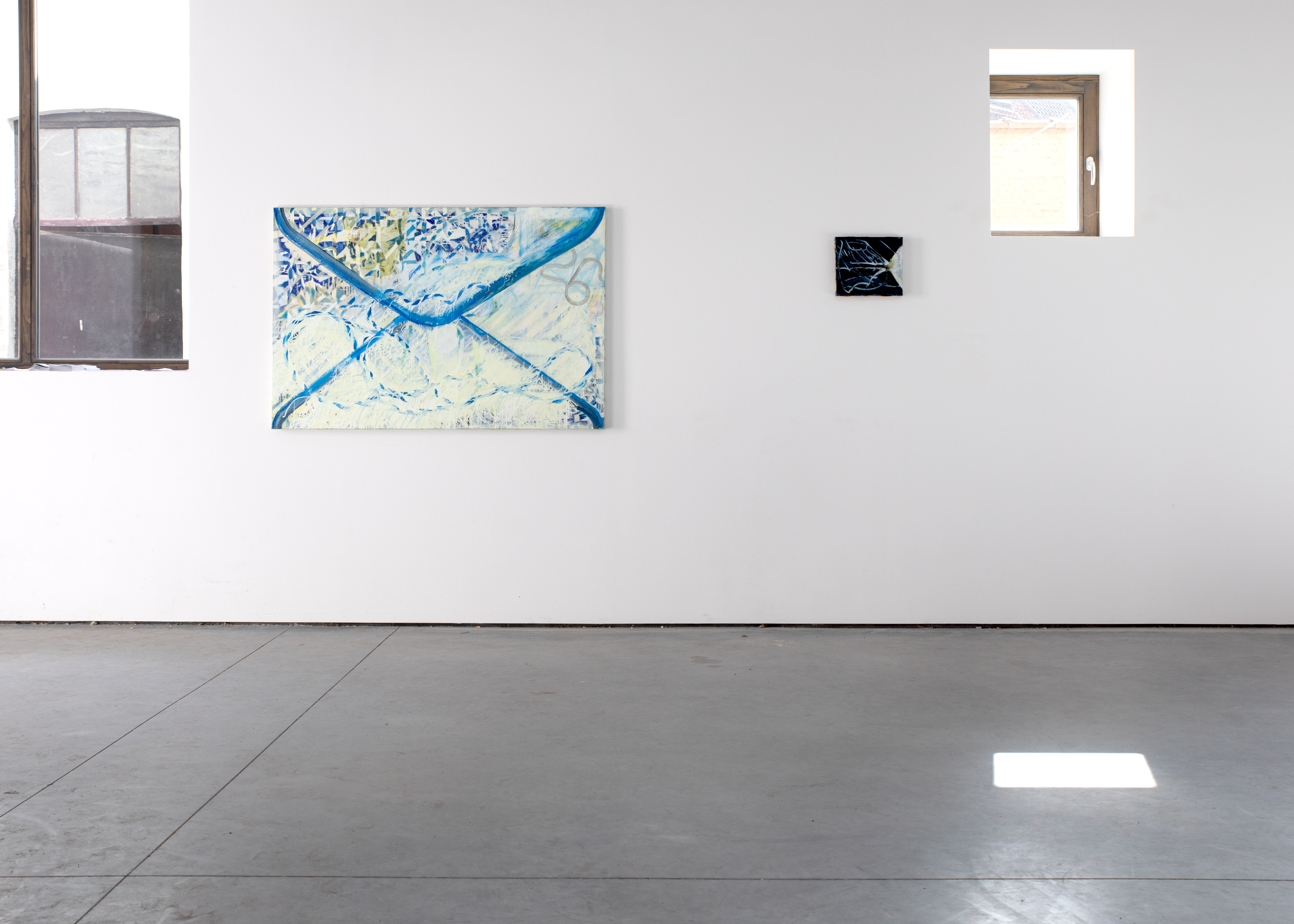The exhibition will present an extensive series of interrelated paintings developed over the last two years. The work has accumulated around a number of repeating motifs that triangulate a way forward whilst remaining constant vectors that gradually accumulate riffs and meaning(s) in an iterative and gradual process of picture making. As such, the works constitute diagrams (of a material process, memory and personal history), tokens (of the same things), bridges (between those same things), shelters (for those same things), islands in (and of) the world - all at once. The paintings will be accompanied by a collaborative piece of writing by Alicja Melzacka, Febe Lamiroy and Myrthe van der Mark.