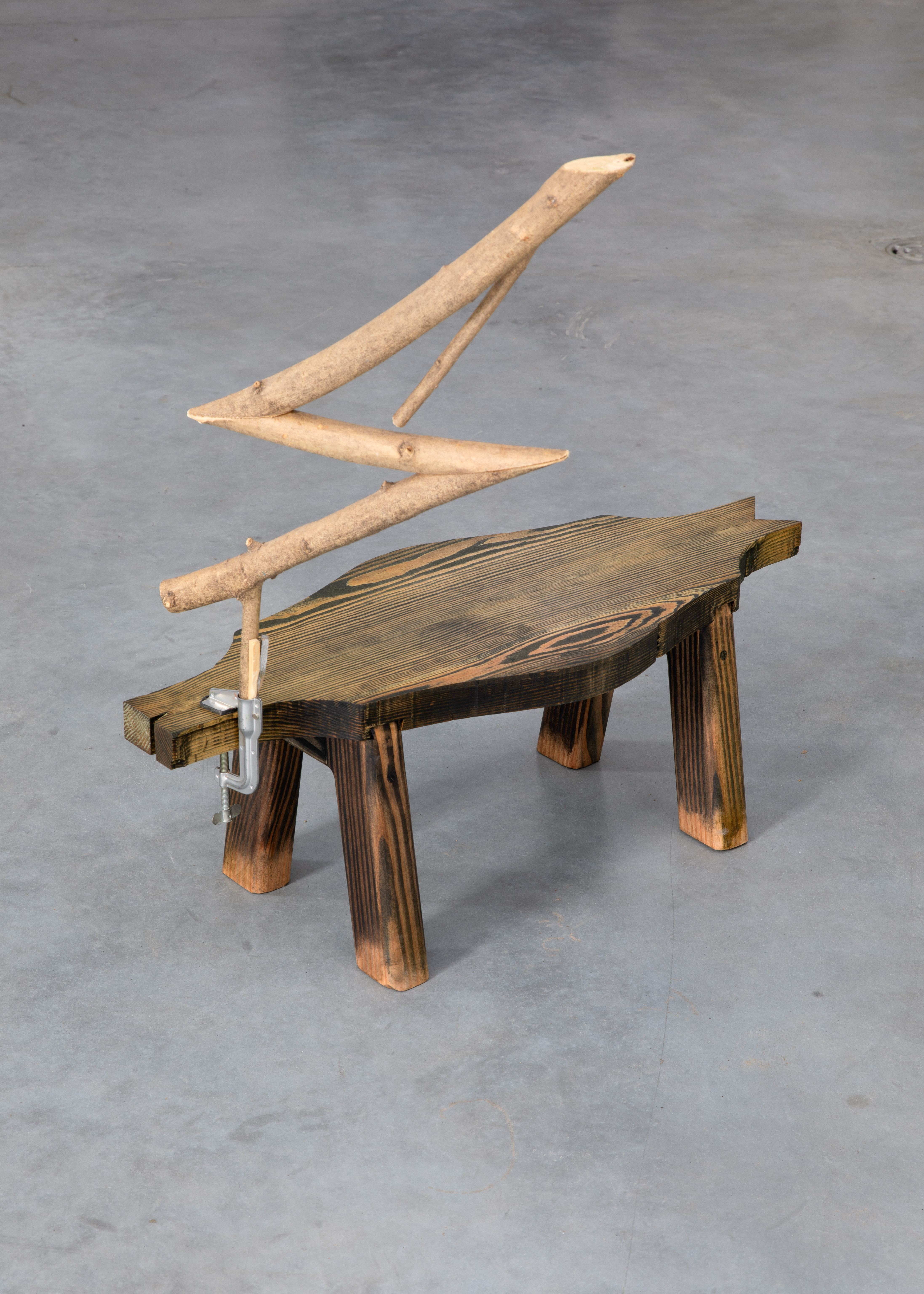 Each work carefully follows its predecessors, in a slow and iterative picture-making process, in which visual themes grow and develop organically. This primarily plays out in paintings, drawings, and occasionally in three-dimensional work. Motifs drawn from literature intermingle with visual markers of identity. This might include pub signs, carnival floats, vernacular architecture, folk paintings and other elements of visual patois. These undergo a subjective examination led by the (im-)possibilities and the ‘cultural memory’ of the material and of matter itself.