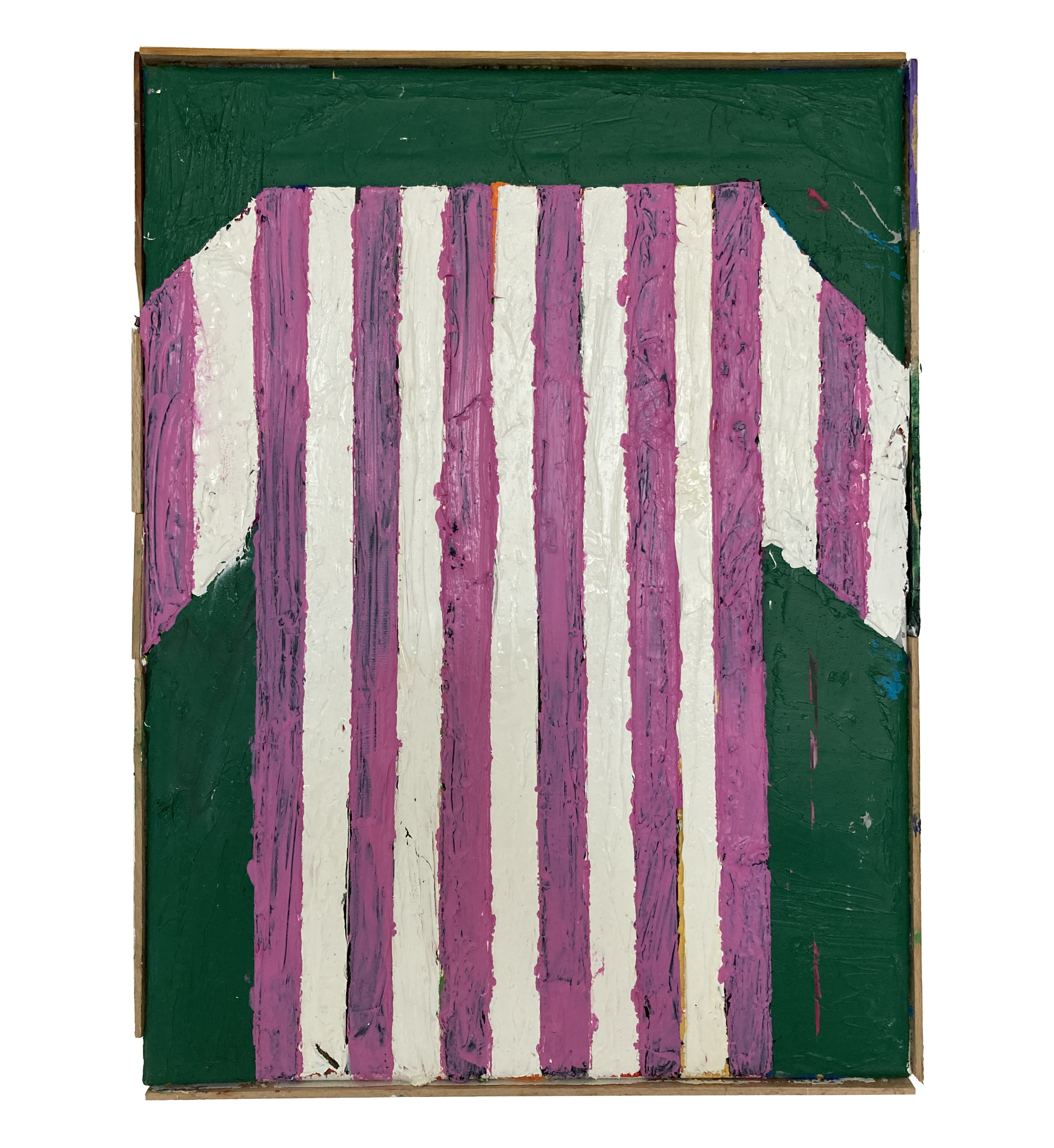 Multidisciplinary artist Bert Huyghe (b. 1989) lives and works in Oostende, where he divides his time between painting, writing, making music, and publishing zines. He paints with an apparent childlike playfulness and a hilarious capacity for self-deprecation.