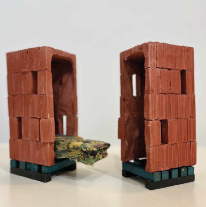 Justine Grillet (b. 1998, Antwerp) is an artist whose work primarily consists of installations and performances. Grillet employs ceramics, metal, moving elements,